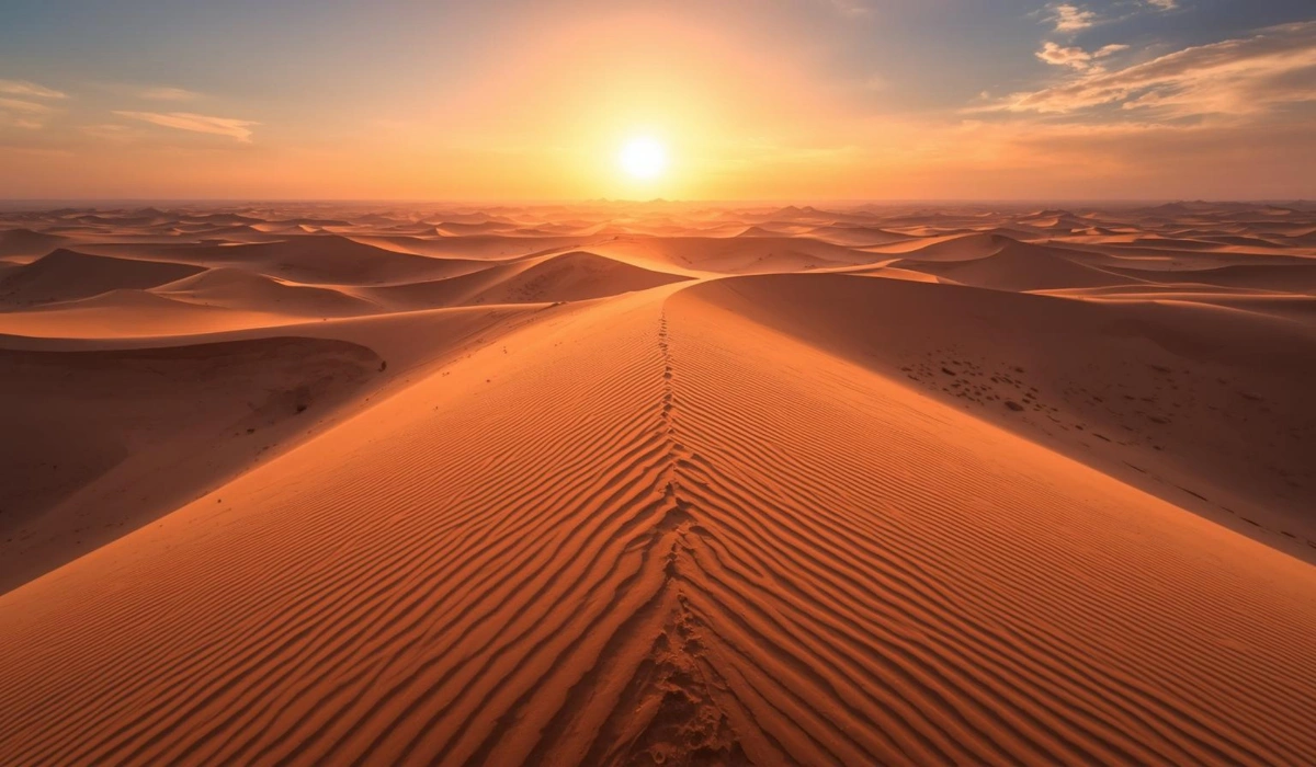 • Sunset and sunrise over the desert dunes